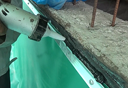 6.2立墻防水卷材收口:PVC防水卷材鋪到立墻邊,上端用收口壓條固定并用密封膠密封。